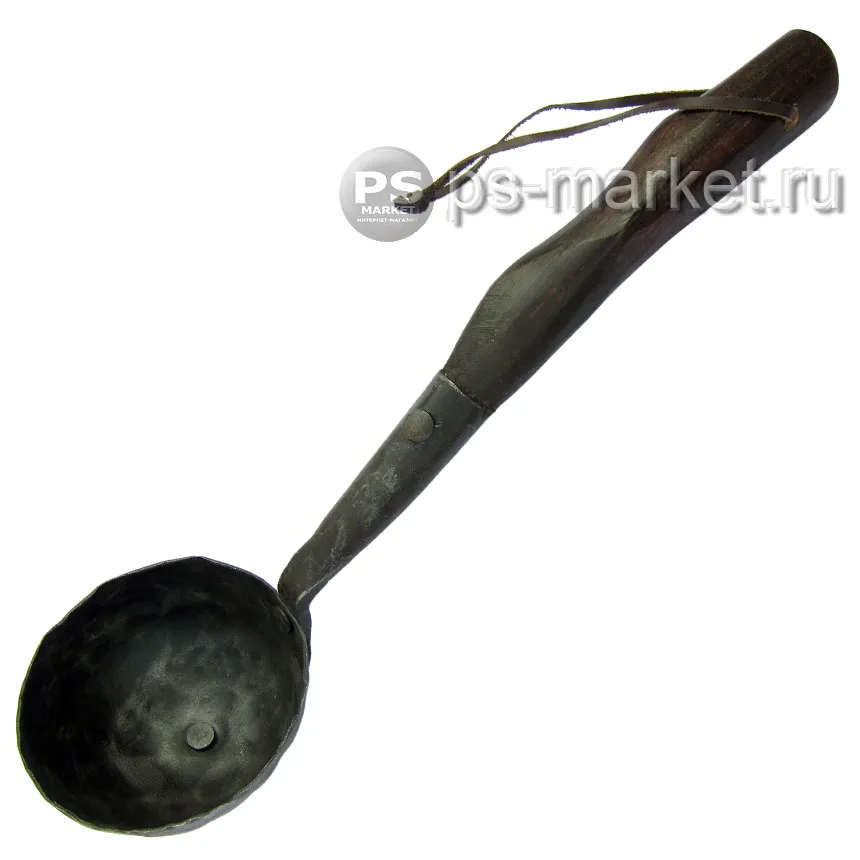 Кованый черпак станет украшением Вашей сауны. Удобная деревянная ручка с кожаным шнурком для подвеса и ковш ручной работы изготовлены нашими мастерами специально для Вас