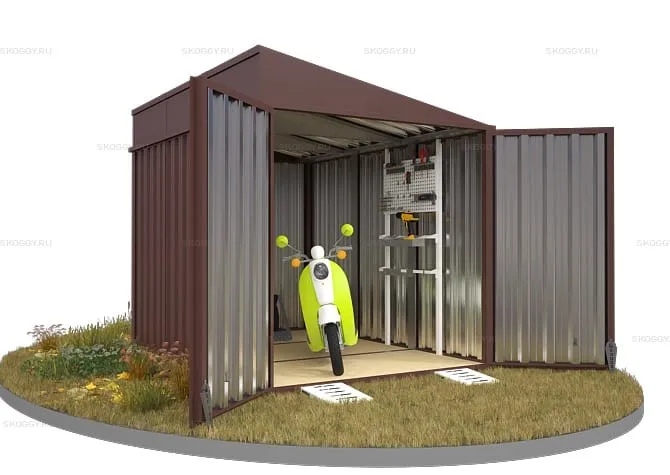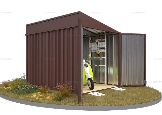 Представляем вашему вниманию контейнер SKOGGY с односкатной крышей 2 х 3 метра. Основным предназначением подобного строения считается хранение инструмента, материалов, вещей и многого другого.