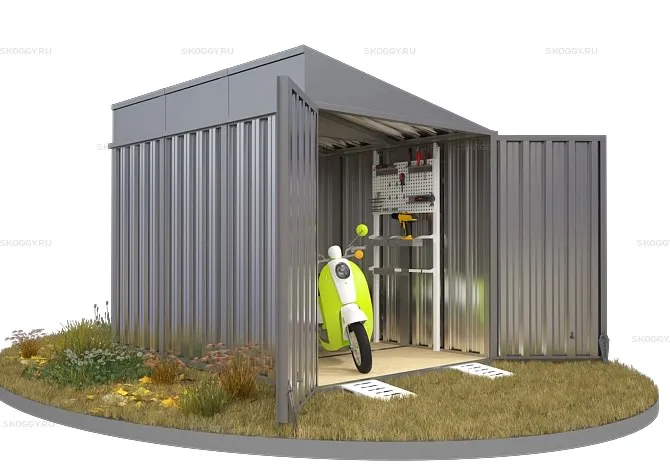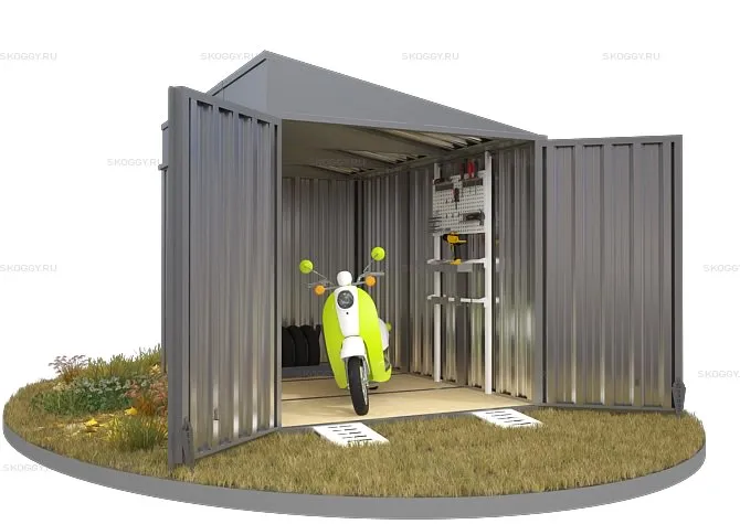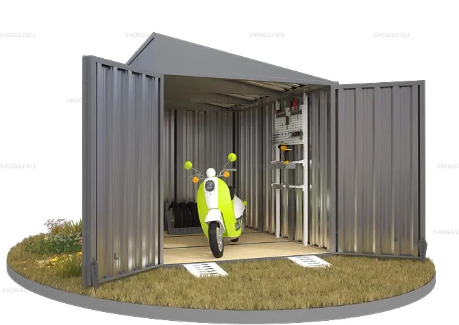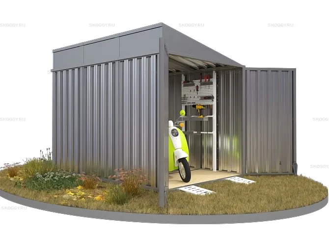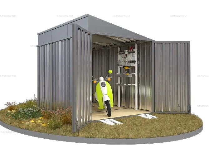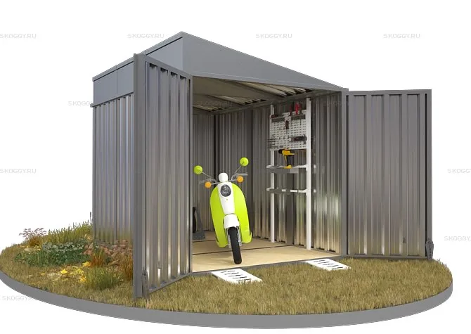 Представляем вашему вниманию контейнер SKOGGY с односкатной крышей 2 х 3 метра. Основным предназначением подобного строения считается хранение инструмента, материалов, вещей и многого другого.