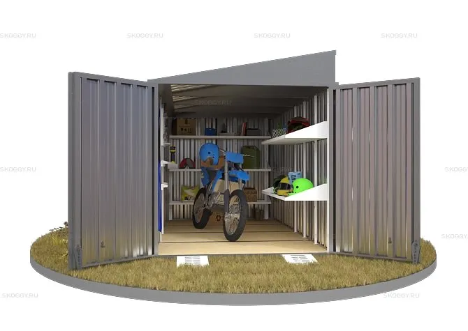 Также, вы можете приобрести дополнительное оборудование для удобства пользования, такое как пандусы, полки, стеллажи, различные системы хранения. Также есть возможность установки дополнительного светового окна и даже системы освещения на солнечной батарее.