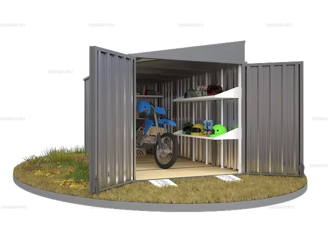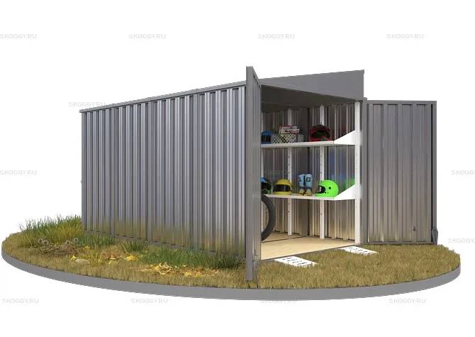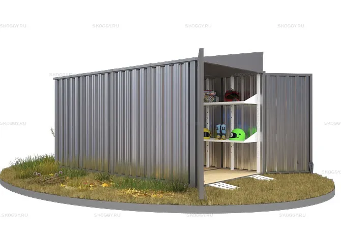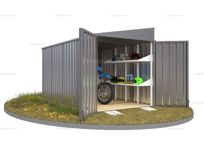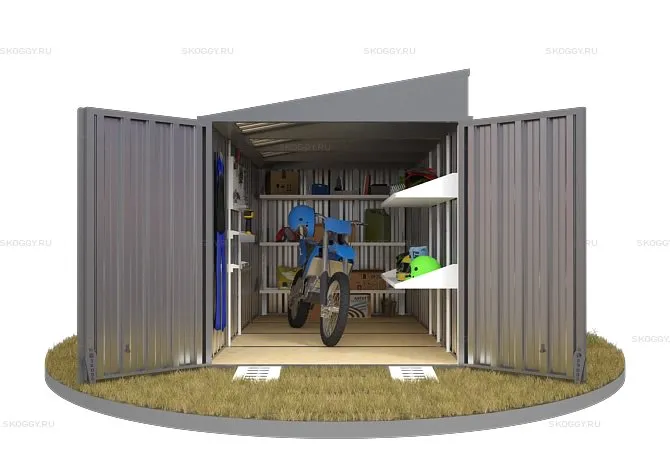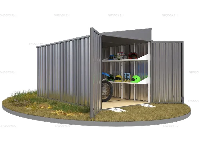 Компания SKOGGY предоставляет вам контейнер секционный с односкатной крышей 2 х 4 м. Основным предназначением изделия является хранение личных вещей, инструментов, материалов.