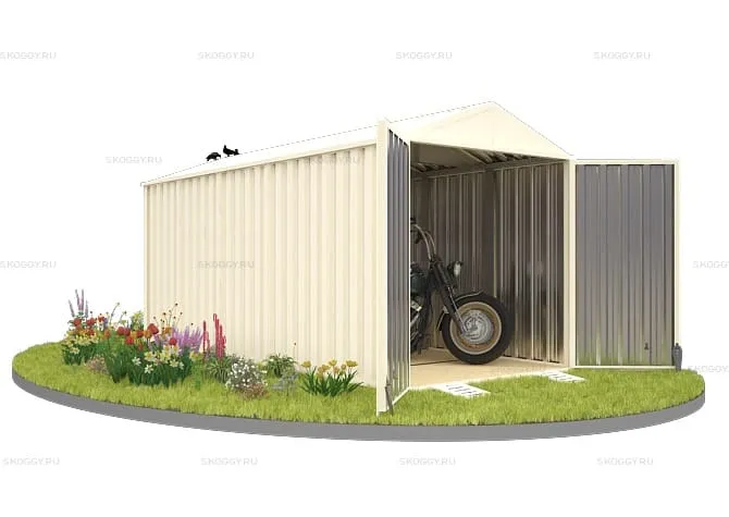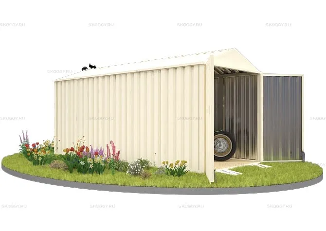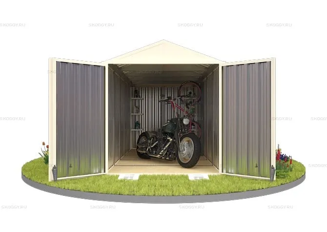 Компания SKOGGY представляет вашему вниманию секционный контейнер с двускатной крышей 2 х 5 м. Главным предназначением конструкции является хранение вещей, инструментов и материалов.