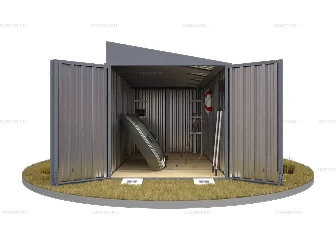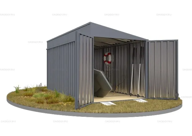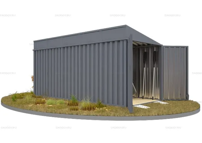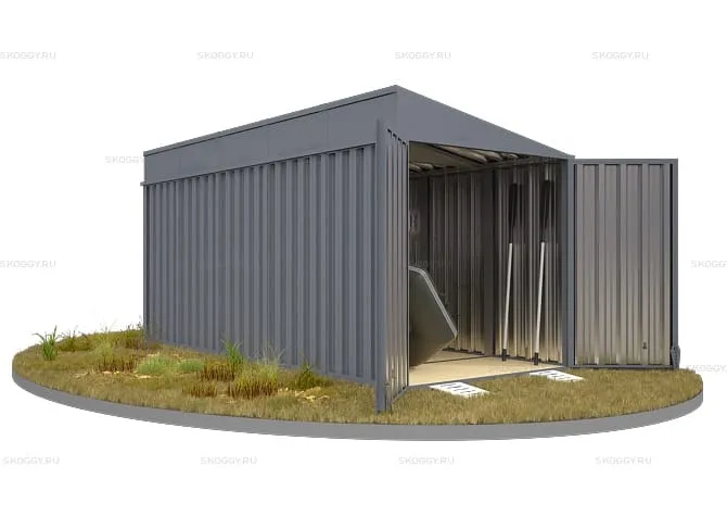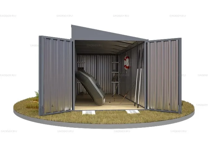 Представляем вашему вниманию контейнер SKOGGY секционный с односкатной крышей 2 х 5 м. Этот полезный атрибут используется для хранения инструментов, вещей, материалов и предметов быта.