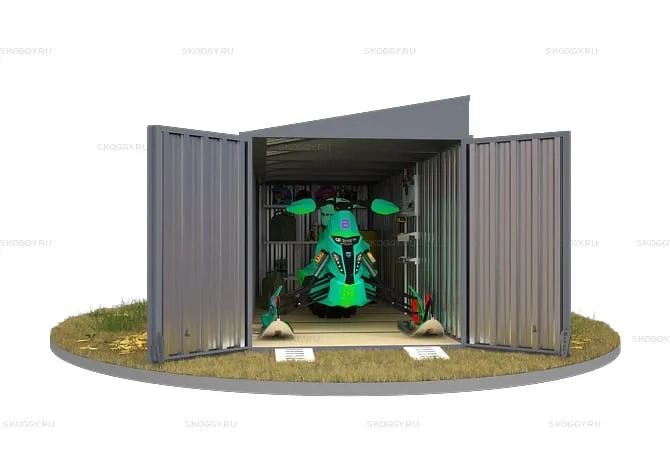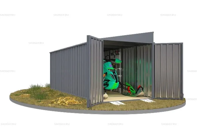 Контейнер предназначен для хранения инструментов, личных вещей, материалов и предметов быта. Строение имеет размеры 2 х 6 м.