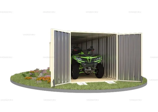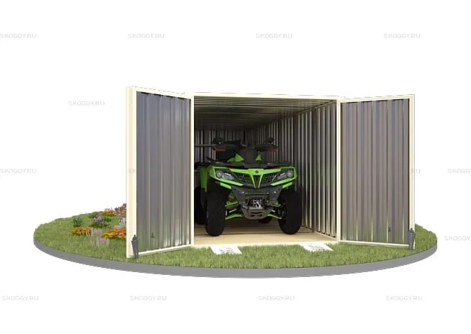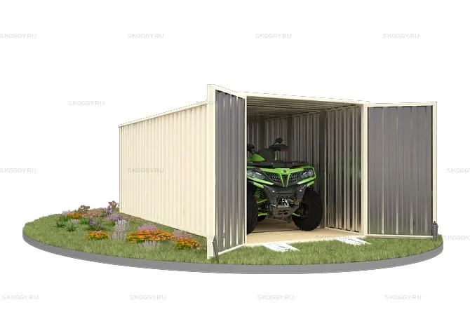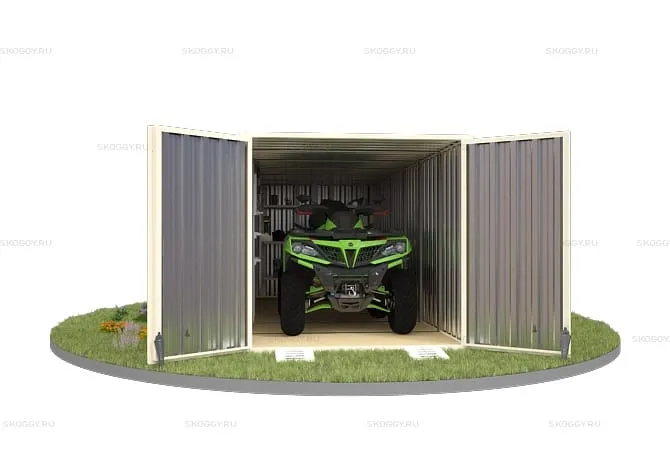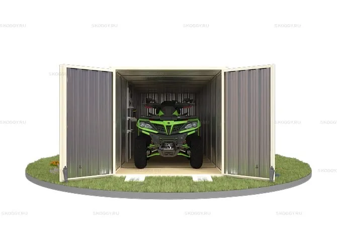 Контейнер предназначен для хранения малогабаритного транспорта, инструментов и предметов быта. Размеры конструкции 2 х 6 м.