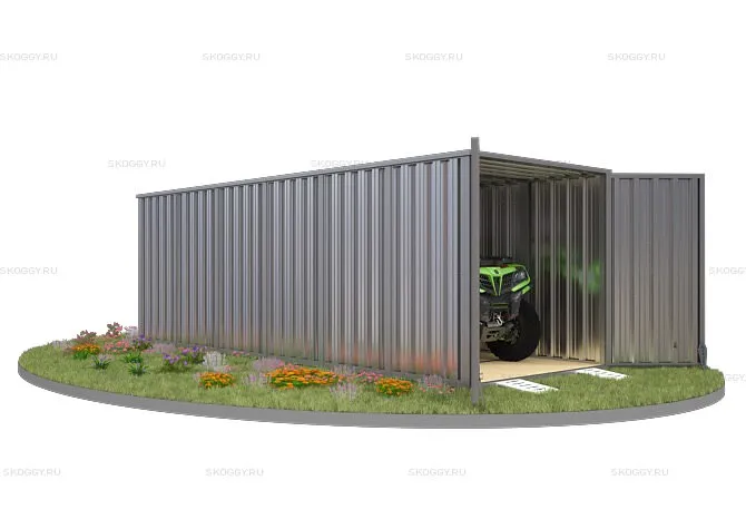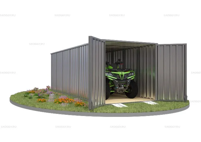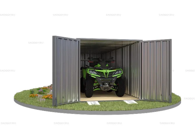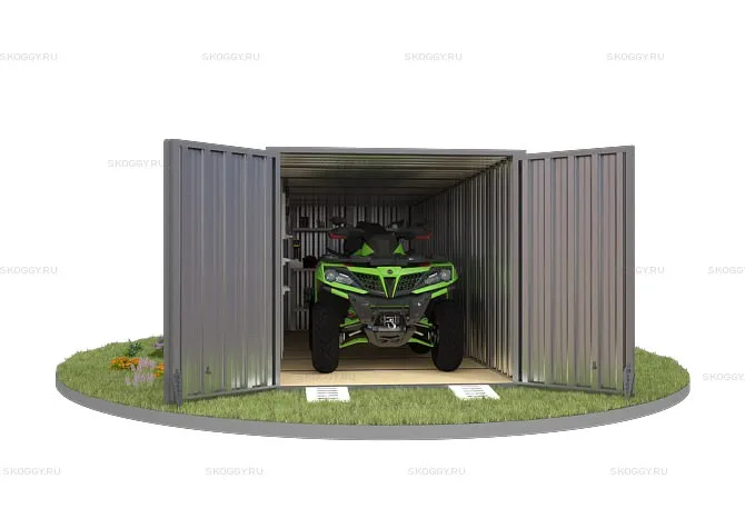 Контейнер предназначен для хранения малогабаритного транспорта, инструментов и предметов быта. Размеры конструкции 2 х 6 м.