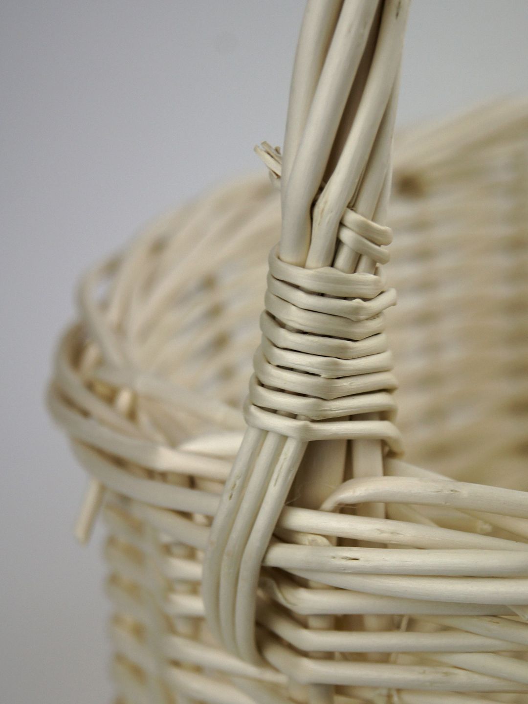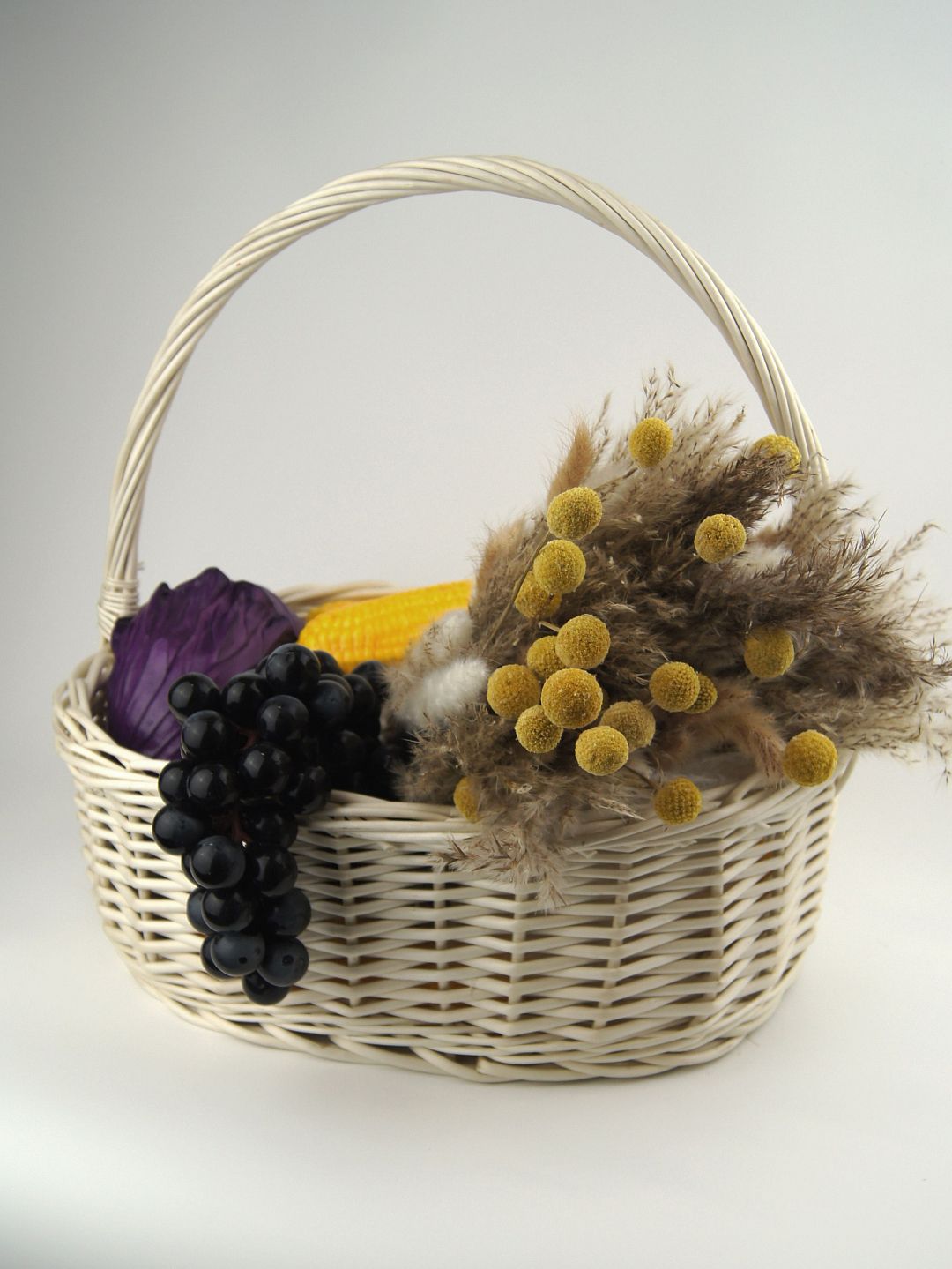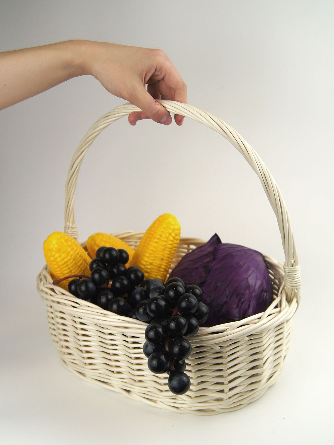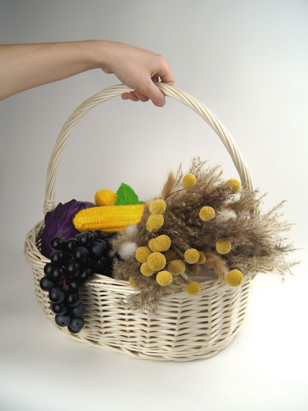 Корзина плетеная. Материал - лоза. С внешней стороны покрыта лаком. Может быть использована для упаковки подарков, пасхальных праздников или для хранения мелких предметов.