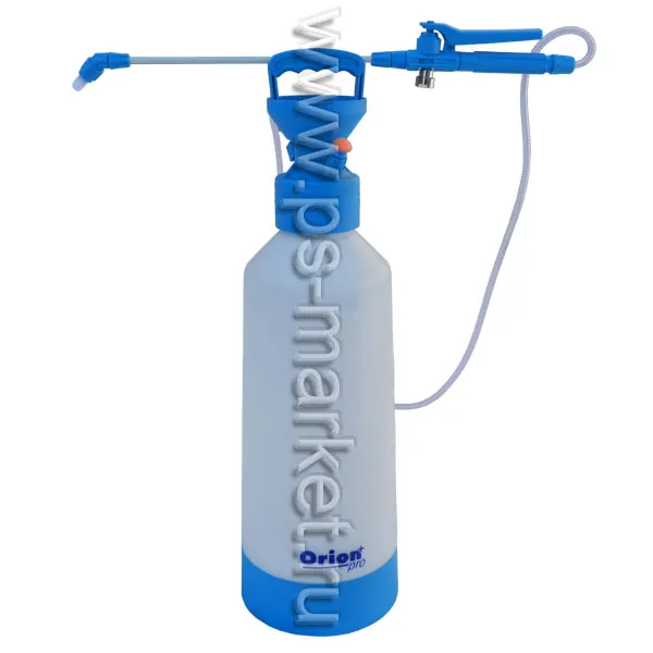 Серия Orion PRO+ оборудована клапанам безопасности, а материалы высокого качества и стабилизирующая подставка емкости (кольцо), дополнительно увеличивают безопасность работы. Orion PRO+ оснащены пикой длиной 35 см сделанной из стекловолокна, рукояткой с манометром, ремень для ношения с подкладками для плеч и лейка с ситом для удобного заливания химических средств. Прозрачная шкала дает возможность точно отмерять уровень жидкости.