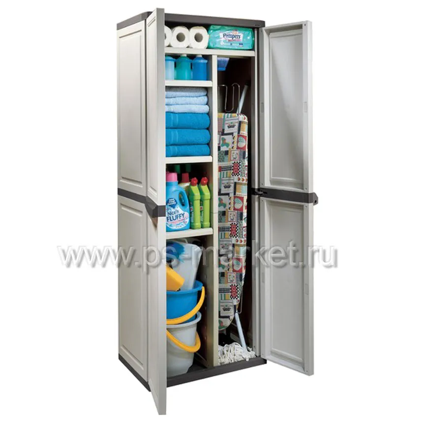 Отличный способ решить проблему хранения вещей дома и на даче - это купить пластиковый шкаф Keter Multi-Purpose. Многофункциональный и хорошо продуманный шкаф оснащен полками, антресолью и вертикальным отеком для хранения длинных предметов, таких как швабра, пылесос, стремянка и даже гладильная доска. Такой шкаф может быть установлен на балкон в квартире, в гараже, в сарае или в любом другом, удобном для вас месте.