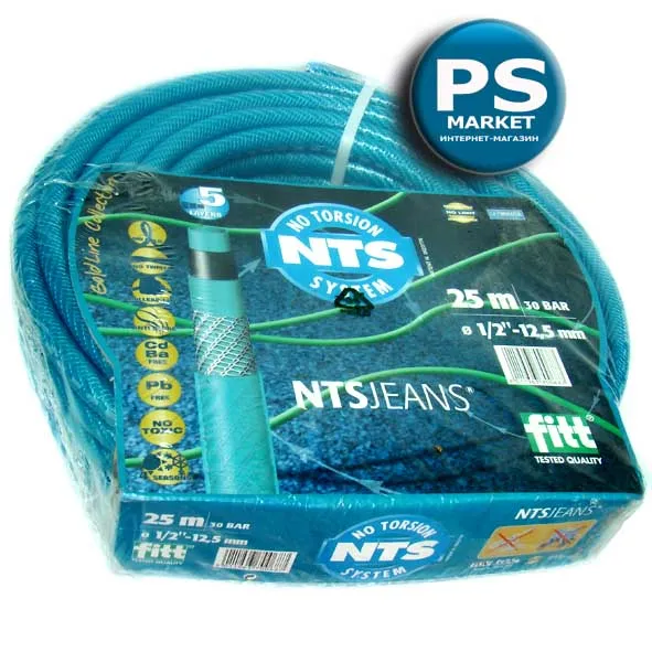 Шланг NTS Jeans – это пятислойный поливочный шланг, изготовленный на заводе компании Fitt в Италии (всемирно известного производителя шлангов и полимерных труб).
