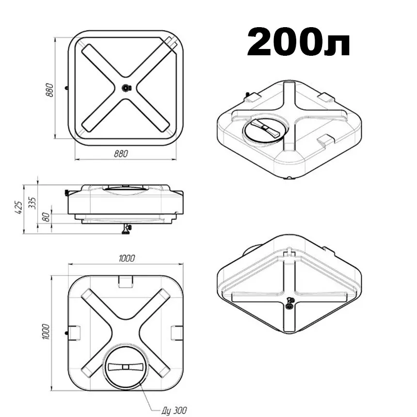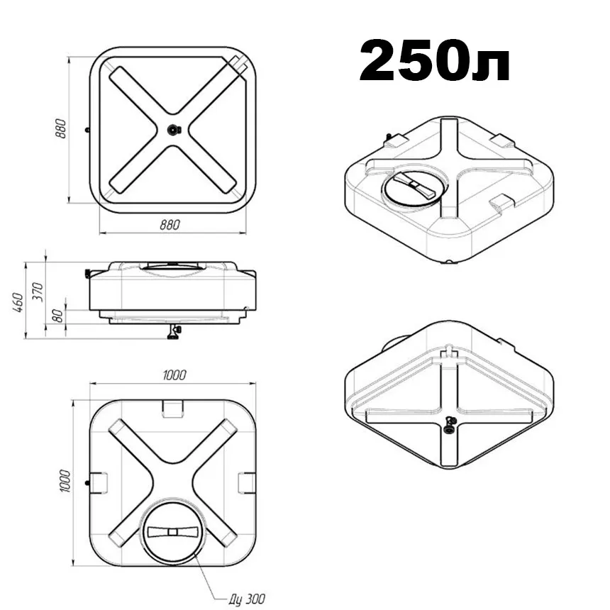 Бак для летнего дачного душа, объемом 250 литров, изготовлен из высококачественного полиэтилена, не подверженного коррозии и воздействию УФ лучей.